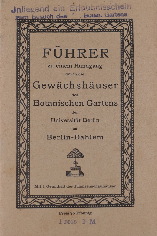 Führer zu einem Rundgang durch die Gewächshäuser des Botanischen Gartens der Universität Berlin zu Berlin-Dahlem