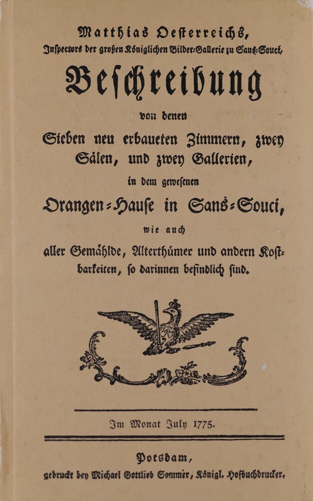 Matthias Oesterreichs Beschreibung von denen sieben neu erbaueten Zimmern, zwey Sälen, und zwey Gallerien, in dem gewesenen Orangenhause in Sanssouci