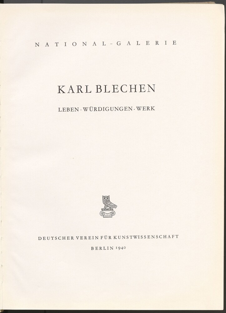 TitleKarl Blechen : National-Galerie ; Leben, Würdigungen, Werk