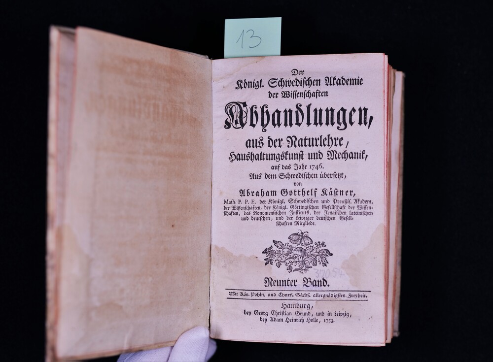 Hauptsacht. 1.1739/40 - 41.1779: Der Königl. Schwedischen Akademie der Wissenschaften Abhandlungen aus der Naturlehre, Haushaltungskunst und Mechanik